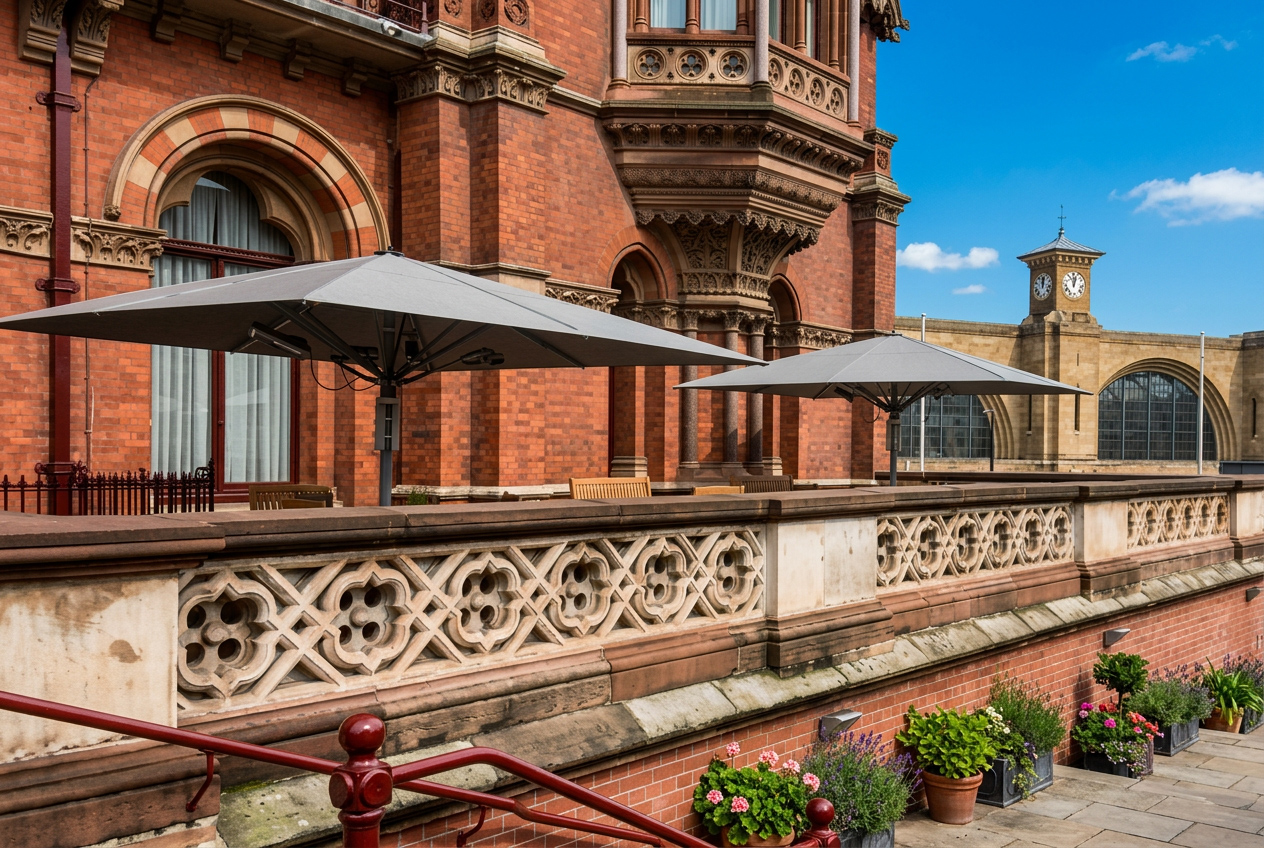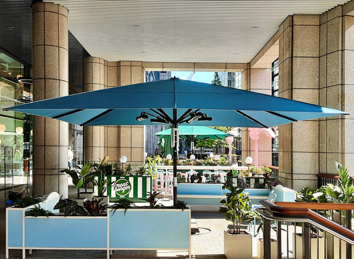 Our Classic Parasols are suitable for all types of commercial and residential use. Manufactured to the highest quality they are available in various sizes up to 6m square but with our rain-gutter system can protect an area of any size. All parasols have a fixture option of a stainless steel ground socket or surface mounted mobile bases.