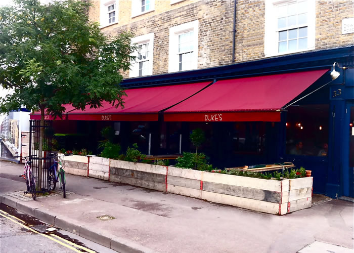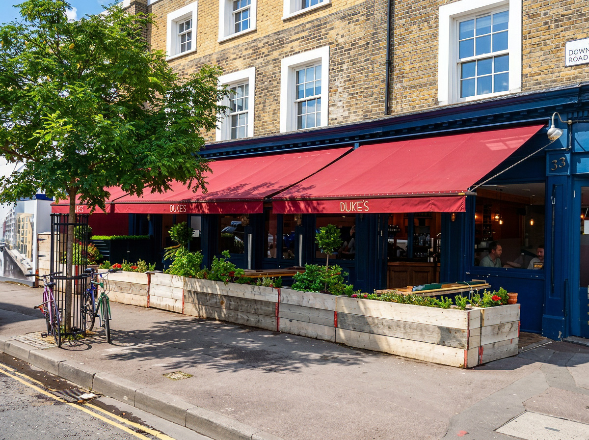 Outdoor eating and drinking area for bar restaurant