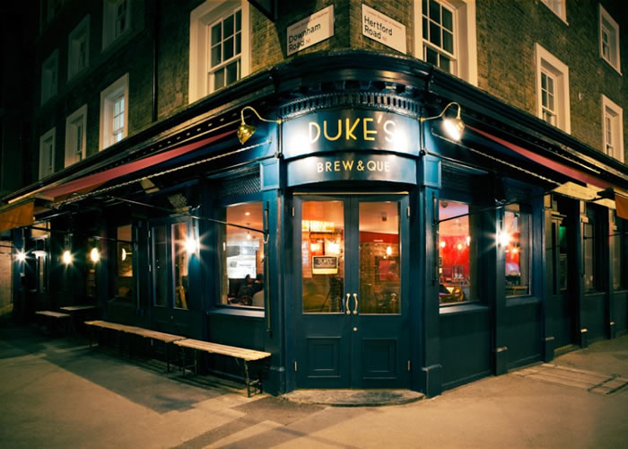 Outdoor eating and drinking area for bar restaurant at Duke's Brew & Que
