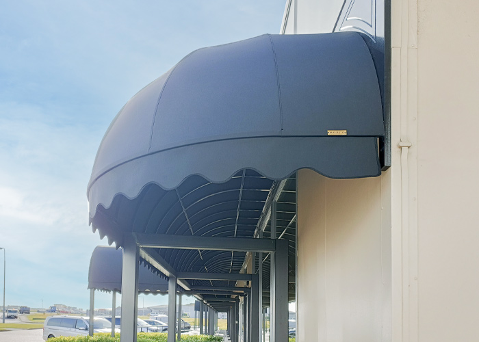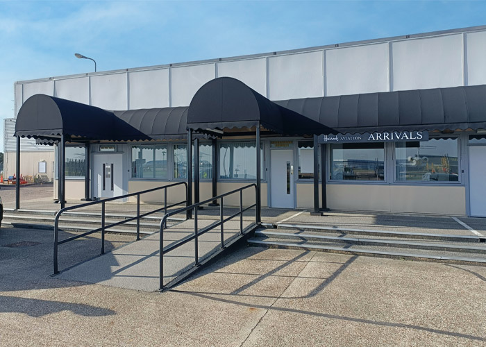 We are delighted to create and install an impressive 20-meter-long Bespoke RIB® Umbrella Canopy with three RIB® Bullnose Canopies Additions at Harrods for their FBO (fixed based operator) facility located at Stansted Airport.
