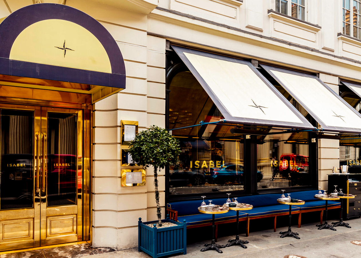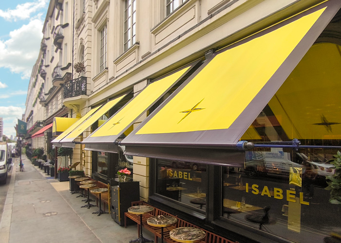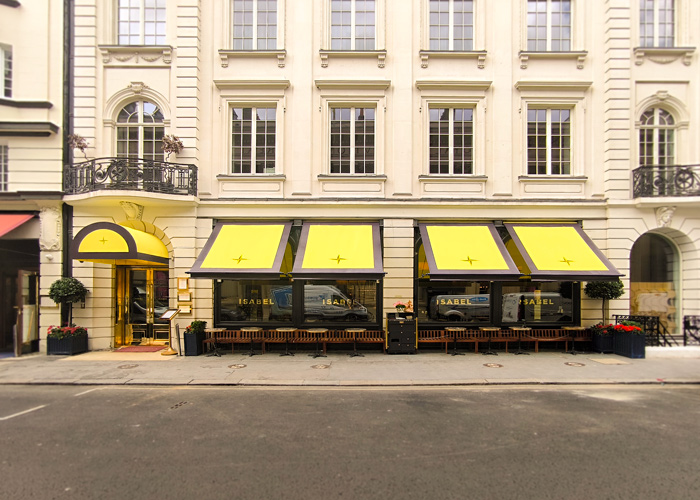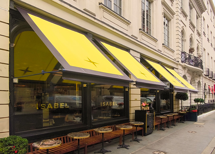 The distinctive design, featuring Isabel’s logo on the awnings and entrance canopy at Isabel in London’s Albemarle Street, has been applied using our RAGs Branding