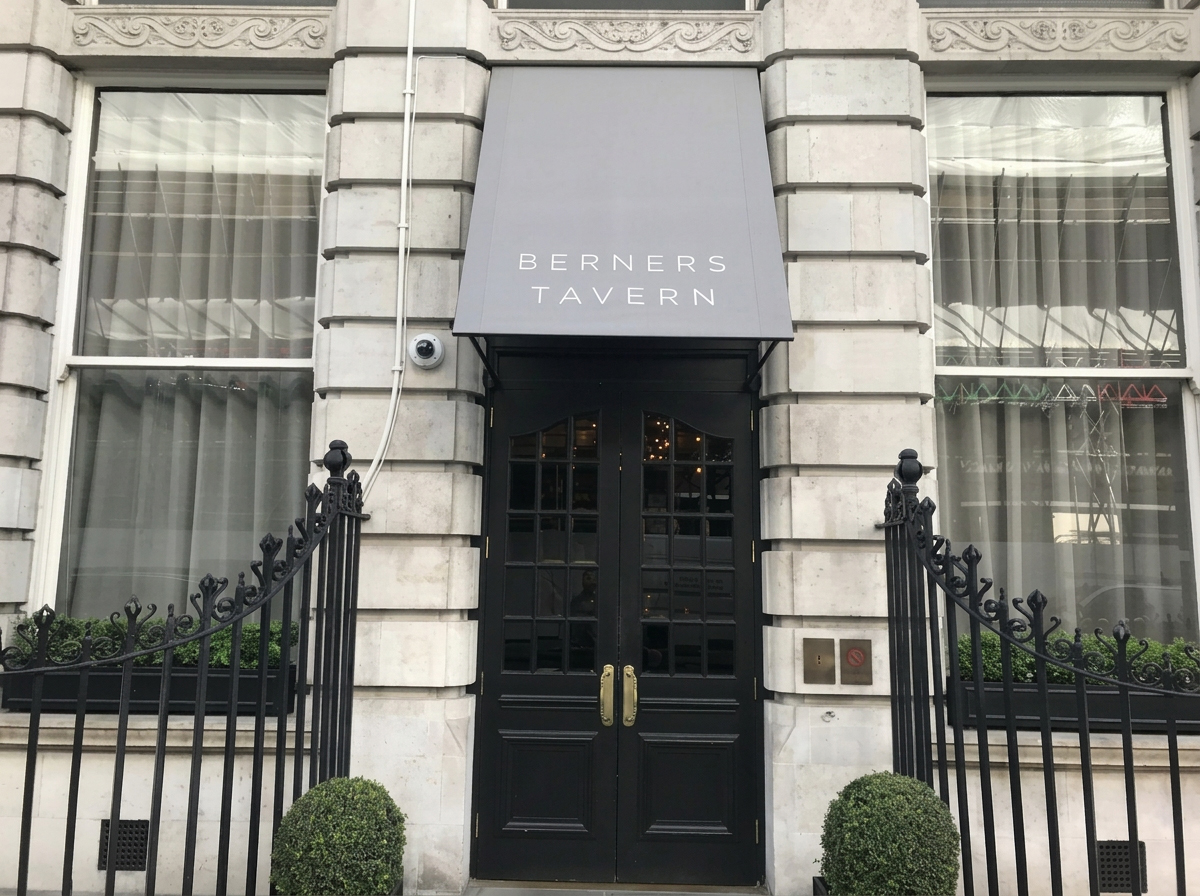 Sophisticated solution for entrance using a strong hidden framework and fabric panels subtlely embossed white on white to create a minimalist and stylish end product
