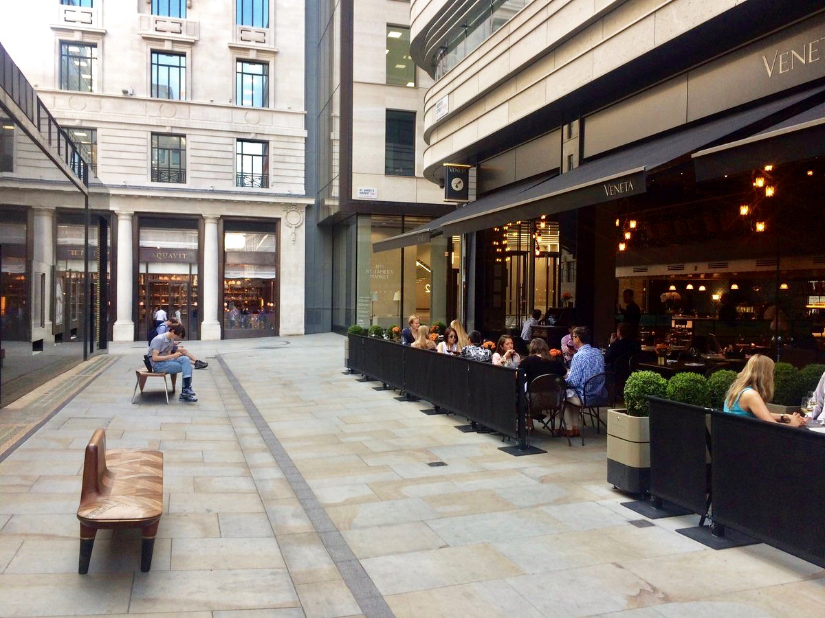 Multiple restaurants with Awnings and Barriers at St. James's Market