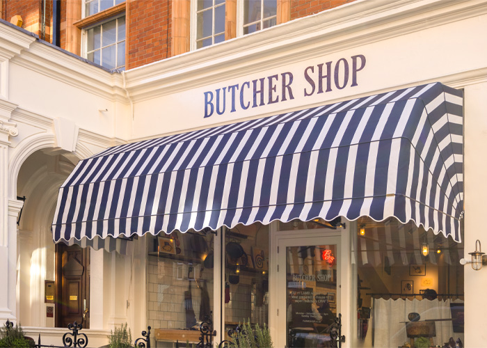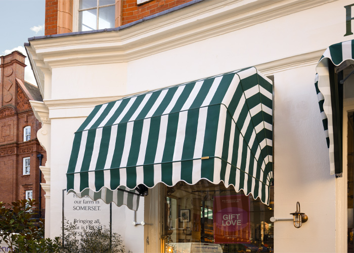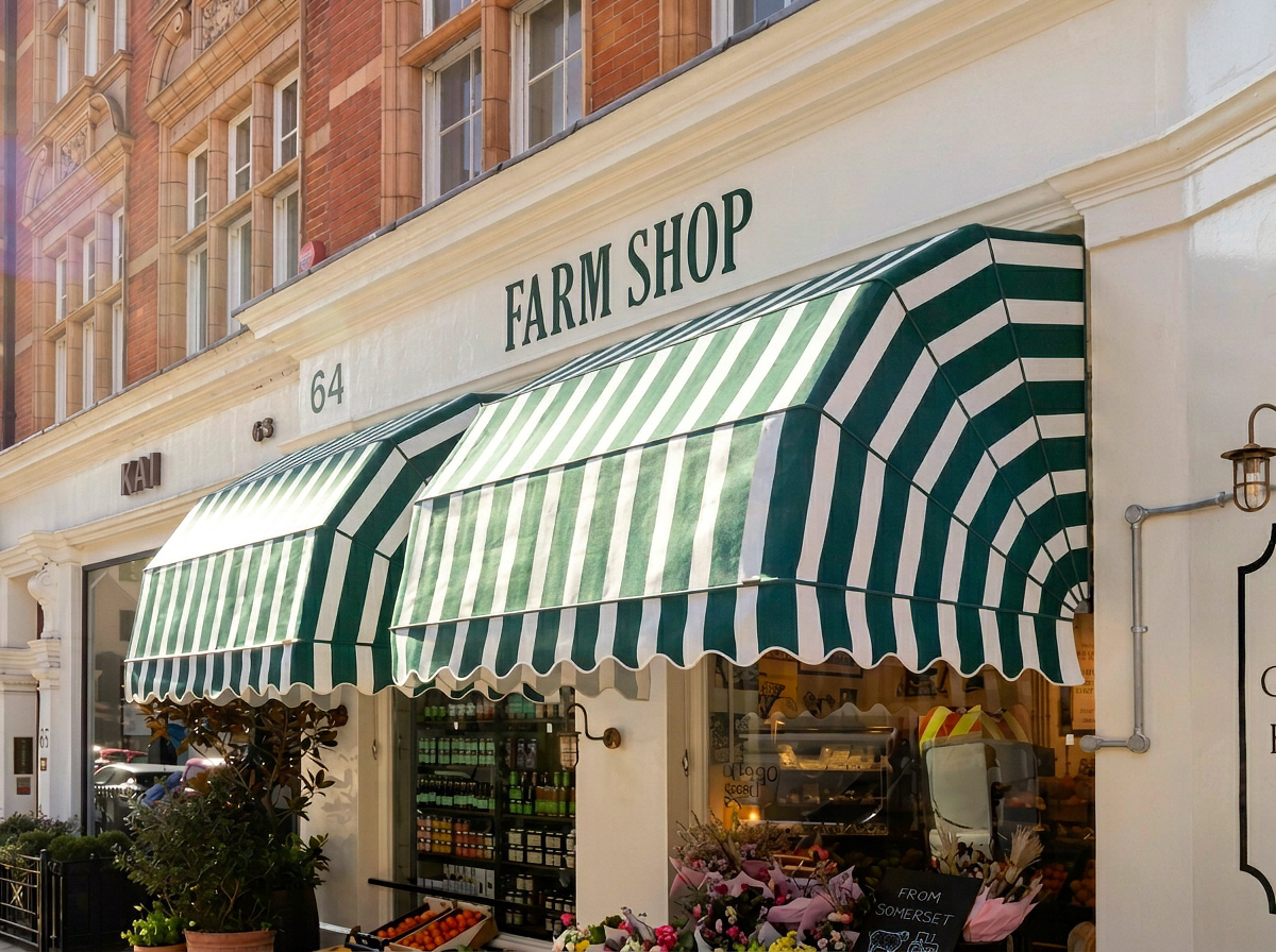 Five Classic Dutch Canopies for The Art Farm’s new Mayfair Farm Shop, requiring a great deal of thought by our Design Team to ensure a safe installation over the sunken stair wells
